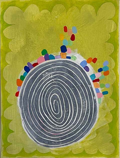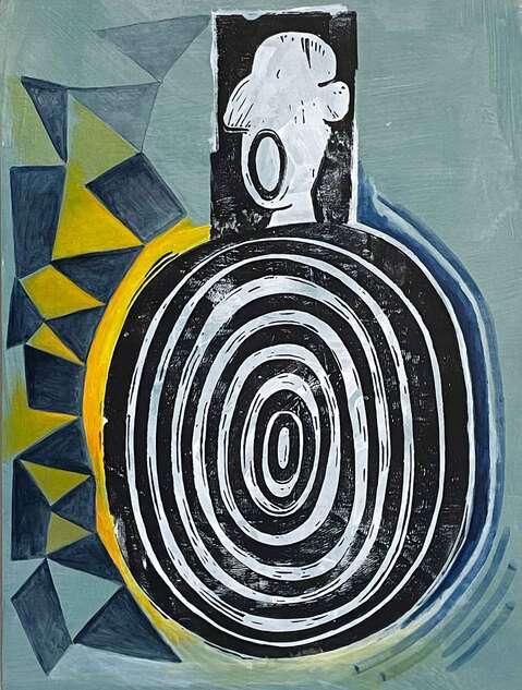 BLOCK PRINT AND ACRYLIC ON PAPER