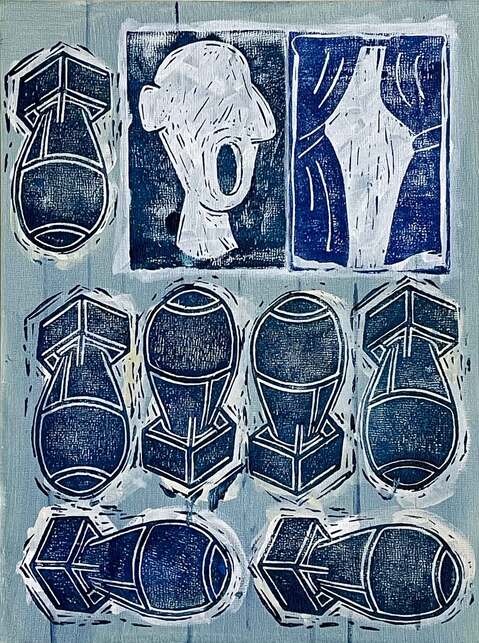 BLOCK PRINT AND ACRYLIC ON PANEL