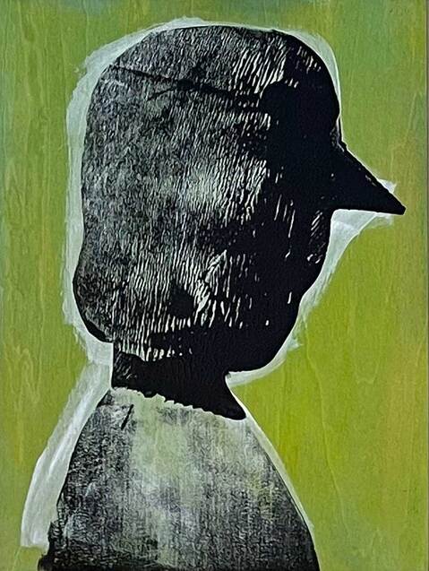 BLOCK PRINT AND ACRULIC ON PANEL
