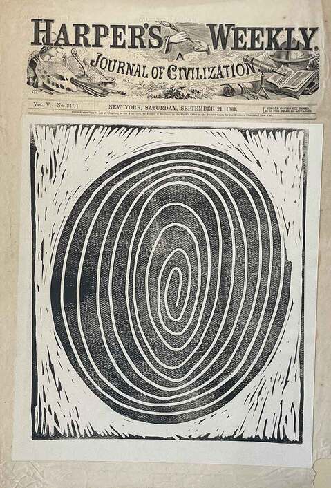 BLOCK PRINT ON FOUND PAPER